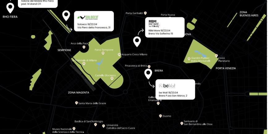 In nostri brand presenteranno le ultime novità durante la Milano Design Week dal 18 al 23.04. Saremo presenti al Salone del Mobile di Milano stand C11 pad. 18 con Infinity The Engineered Surface, in Brera al Fuorisalone.it in P.zza San Marco 2 con beWall, in Via Solferino 15 con RBM MORE e in Via Piero della Francesca 31 con Soloeco Home Design Friends.