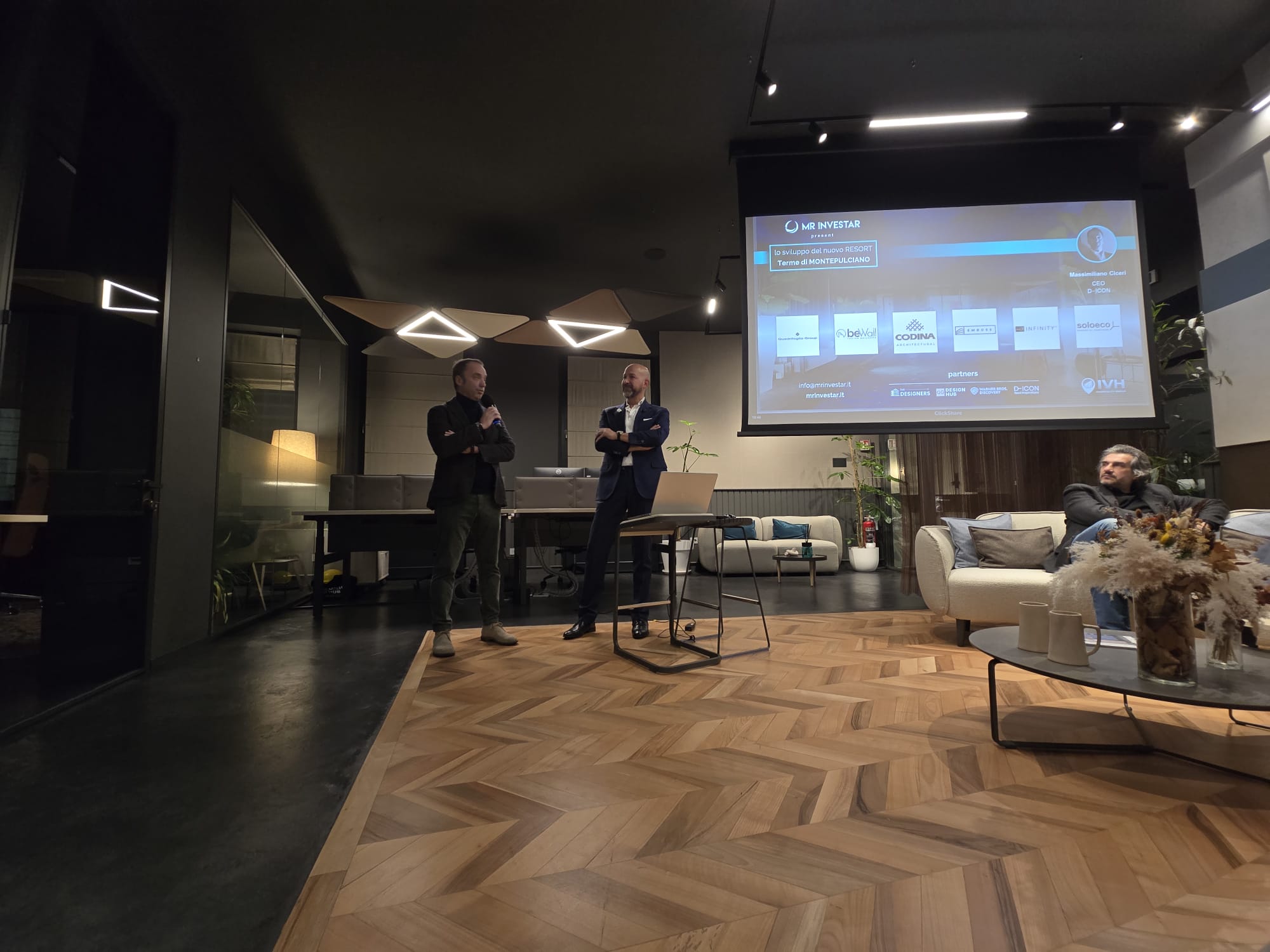 La presentazione del progetto Resort Terme di Montepulciano si è svolta negli spazi del QG Design Hub, luogo di riferimento per il confronto tra progettazione, industria e innovazione, scelto in virtù della collaborazione con D-ICON.
