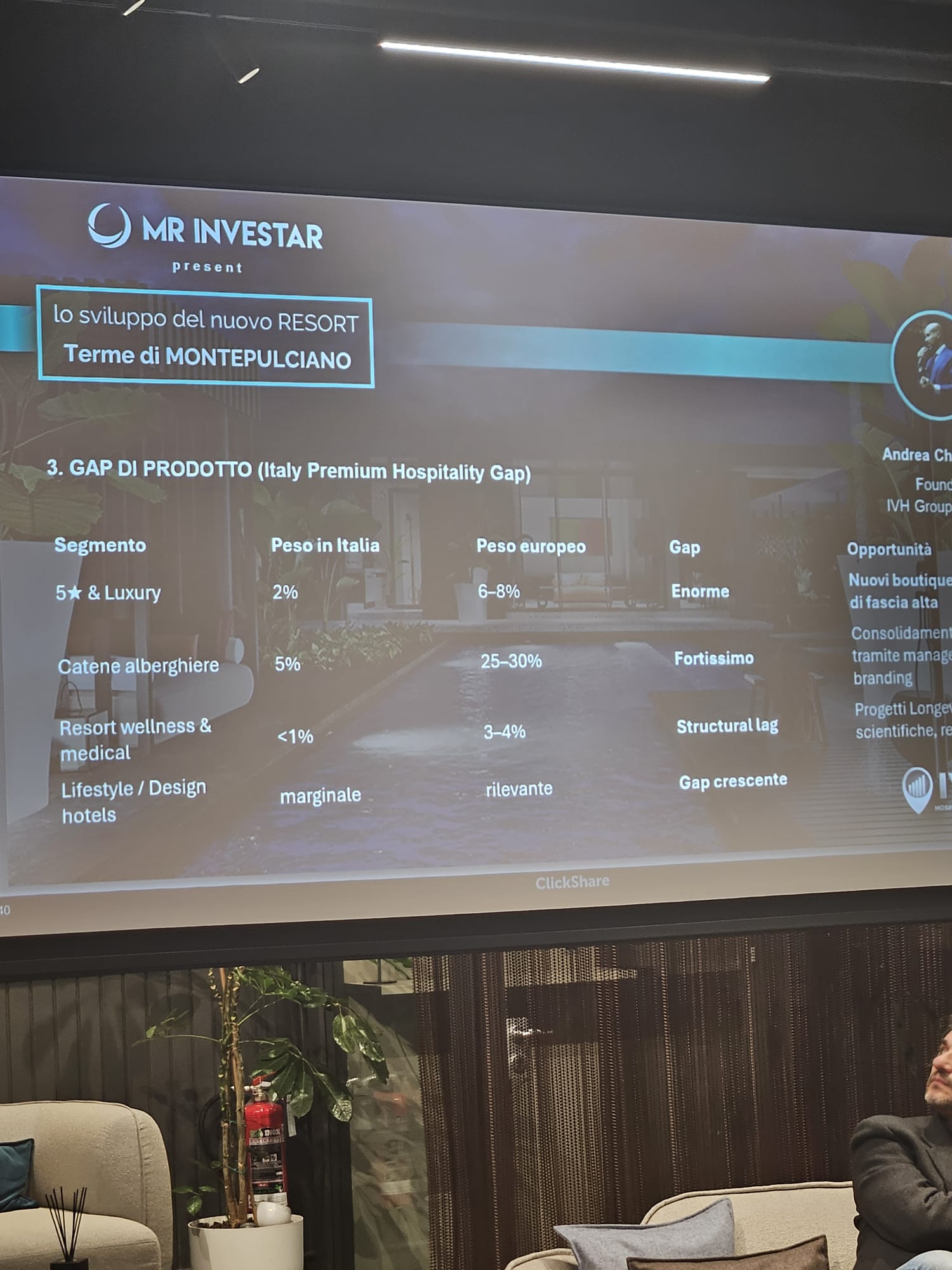 Durante la presentazione è stata illustrata una visione integrata che unisce architettura, sostenibilità, comfort e posizionamento nel segmento luxury wellness, supportata da una struttura finanziaria solida e da un avanzato stato di sviluppo tecnico e autorizzativo.